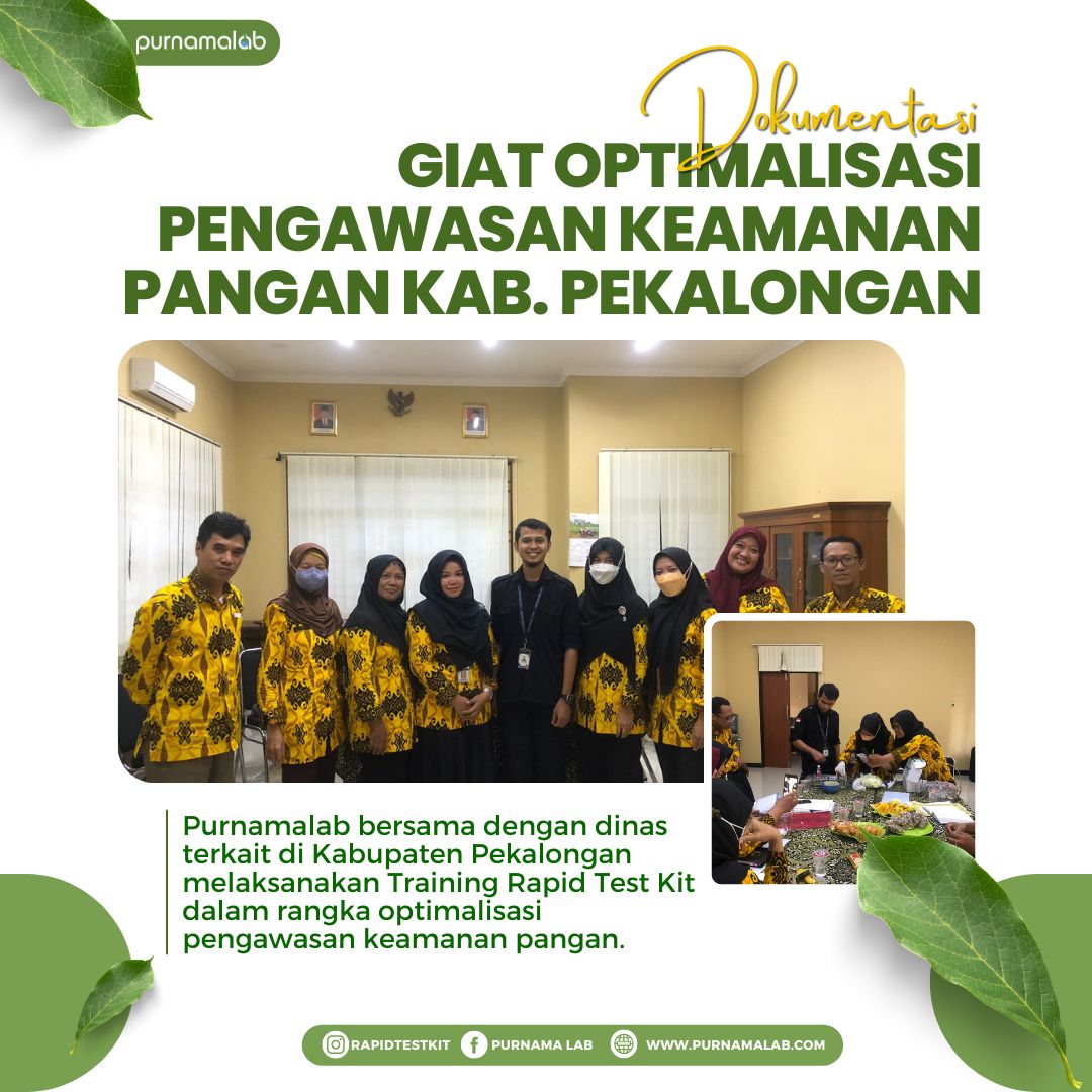 Purnamalab bersama dengan dinas terkait di Kabupaten Pekalongan melaksanakan Training Rapid Test Kit dalam rangka optimalisasi pengawasan keamanan pangan.