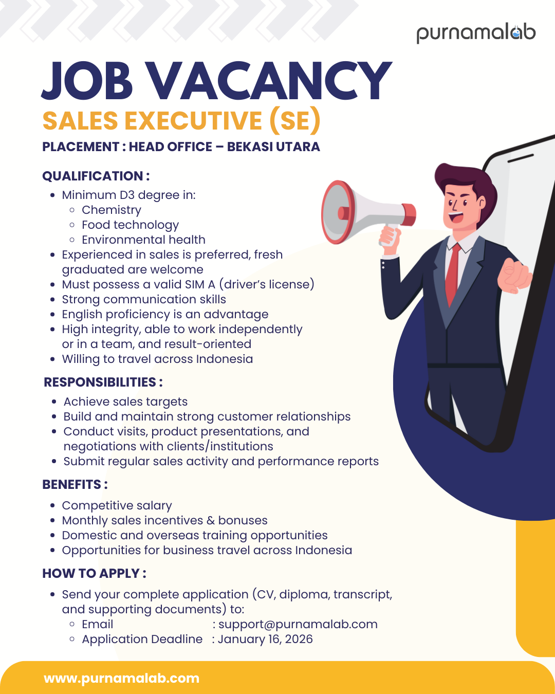 WANTED: SALES EXECUTIVE! 🚀PURNAMALAB lagi cari kamu yang jago dan hobi networking!...